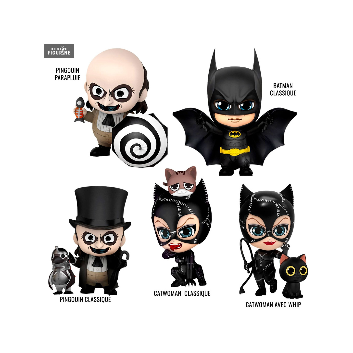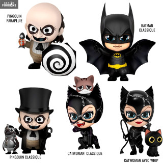 The Cosbaby figurines never stop arriving with each time a new opus put forward and this time, it's Batman Returns. So you have the choice between the Penguin in Umbrella version or Classic in the company of another penguin, Classic Catwoman who makes her toilet with the tongue out or the With whip who holds a whip with a black cat or finally the famous Batman.
