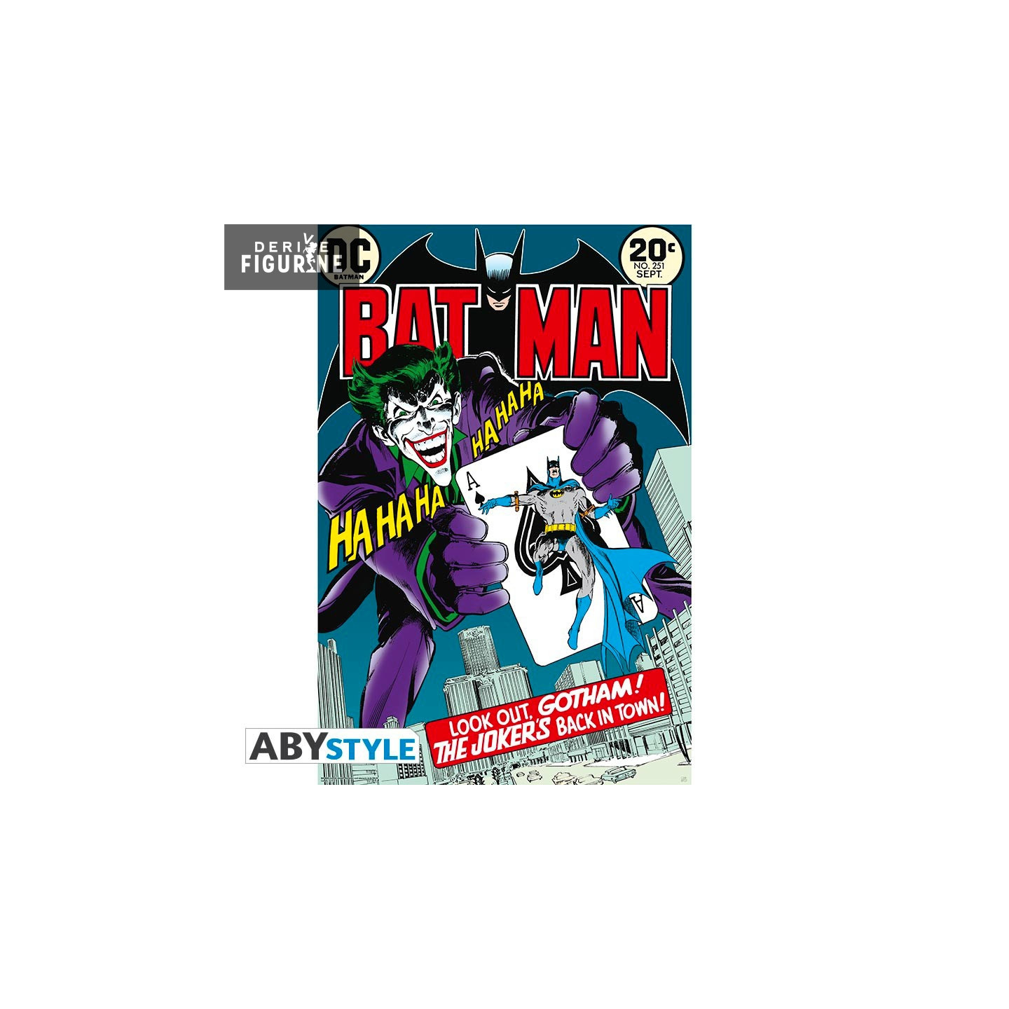 This poster covers the cover of a comic and more precisely, the number 251 of Batman. You can see the Joker holding an ace of spades and it is written that he is back in town. So distrust ...