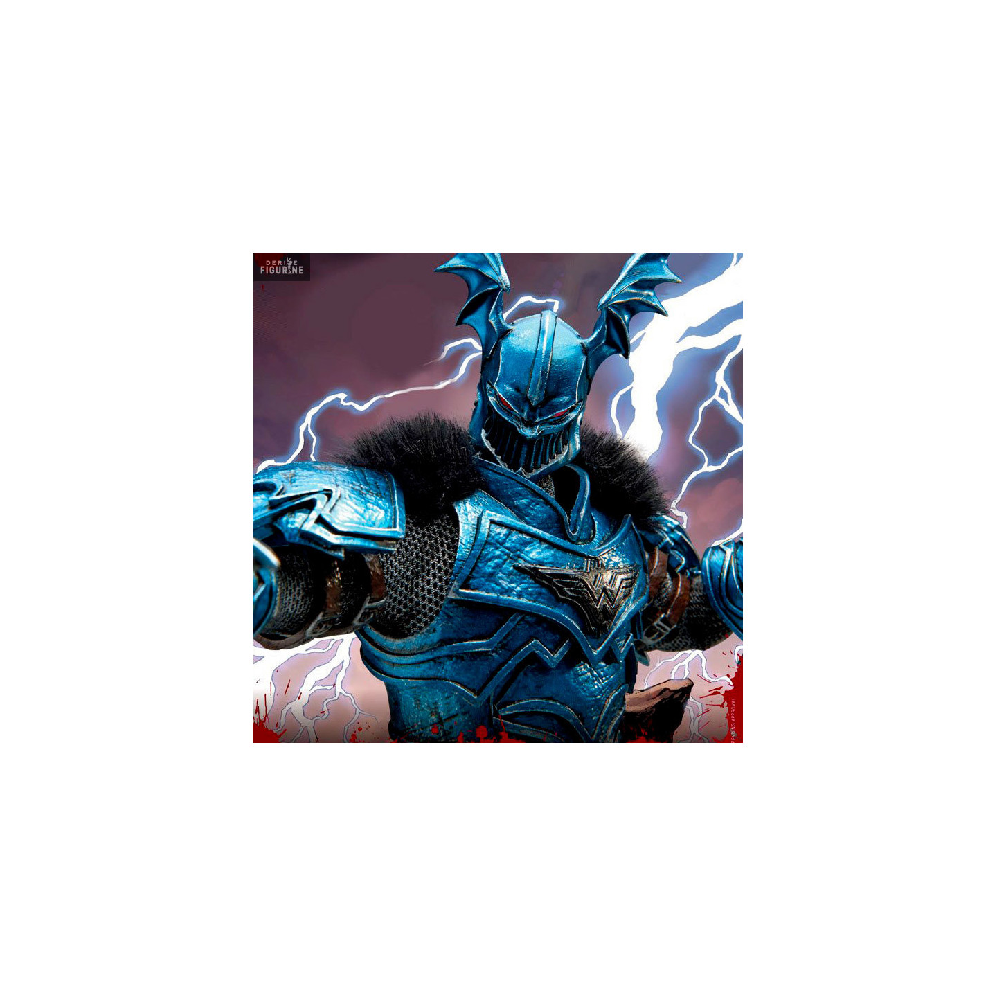 The Merciless is an alternate version of Bruce Wayne that can be seen on Earth-12. He really isn't quite as nice as the one we know because he merged with Ares, the god of war. What's great about this figure is that it has quite a few accessories, interchangeable parts including a face without the helmet, or a helmet with the eyes that light up (requires 3 LR41 batteries included).