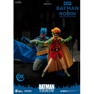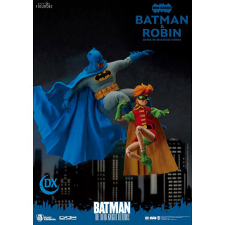 Official figures of Batman and Robin measuring approximately 16 and 21 centimeters high. They are from the Dynamic 8ction Heroes collection. The manufacturer is Beast Kingdom.