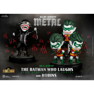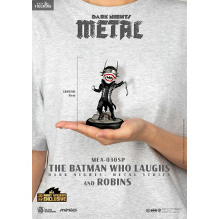 DC Comics: Dark Nights Metal offers this The Batman Who Laughs figure pack accompanied by the Robin Minions for the Mini Egg Attack collection. This special and exclusive edition of Beast Kingdom shows an achievement straight from DC's dark multiverse with a Joker infected with evil toxins and transformed into the Joker who laughs... he is accompanied by his most beautiful creation, namely the Minions Robin...