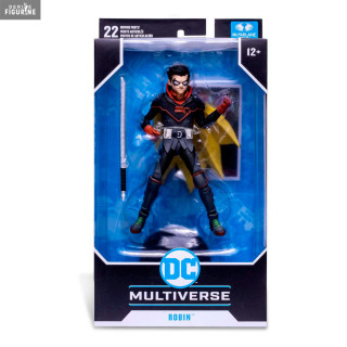 In the DC Comics Multiverse collection, here is a figurine of the dark knight's sidekick from Gotham City, we are obviously talking about Robin and here he is in a figurine from the Infinite Frontier comics. More charismatic than ever, he is sold with a base and his weapon which is none other than a Katana.