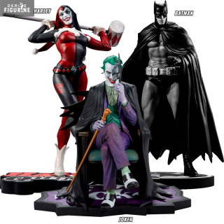 Official figure of your choice of Batman Black & White (19 cm), Harley Quinn Red White & Black (19 cm) ou The Joker Purple Craze (15 cm) in resin. The manufacturer is DC Direct.