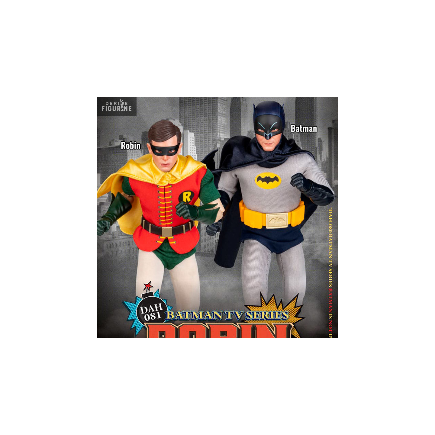 The most iconic DC Comics duo is coming! Find Batman and Robin in a new collection that takes up the 1966 TV series. We find our two faithful heroes with the period design, Batman's outfit in gray fabric with his leather gloves and boots as well as his big yellow belt, not to mention his mask where eyebrows are drawn on it. Robin's outfit uses the same characteristics with her large white tights, her red upper body and her yellow fabric cape, with her green leather boots and gloves. These outfits have been designed to look as close as possible to those of period comics. Both fully articulated and delivered with numerous accessories, these figurines will immerse you in the world of Batman and bring a touch of nostalgia to your collection. So do not hesitate any longer and choose one of the characters from the series or both to reform the inseparable duo!