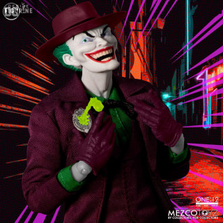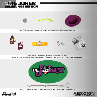 Official figure of The Joker, (Golden Age Edition) which measures approximately 16 centimeters high, scale 1/12. It is from the One:12 collection. The manufacturer is Mezco Toys.