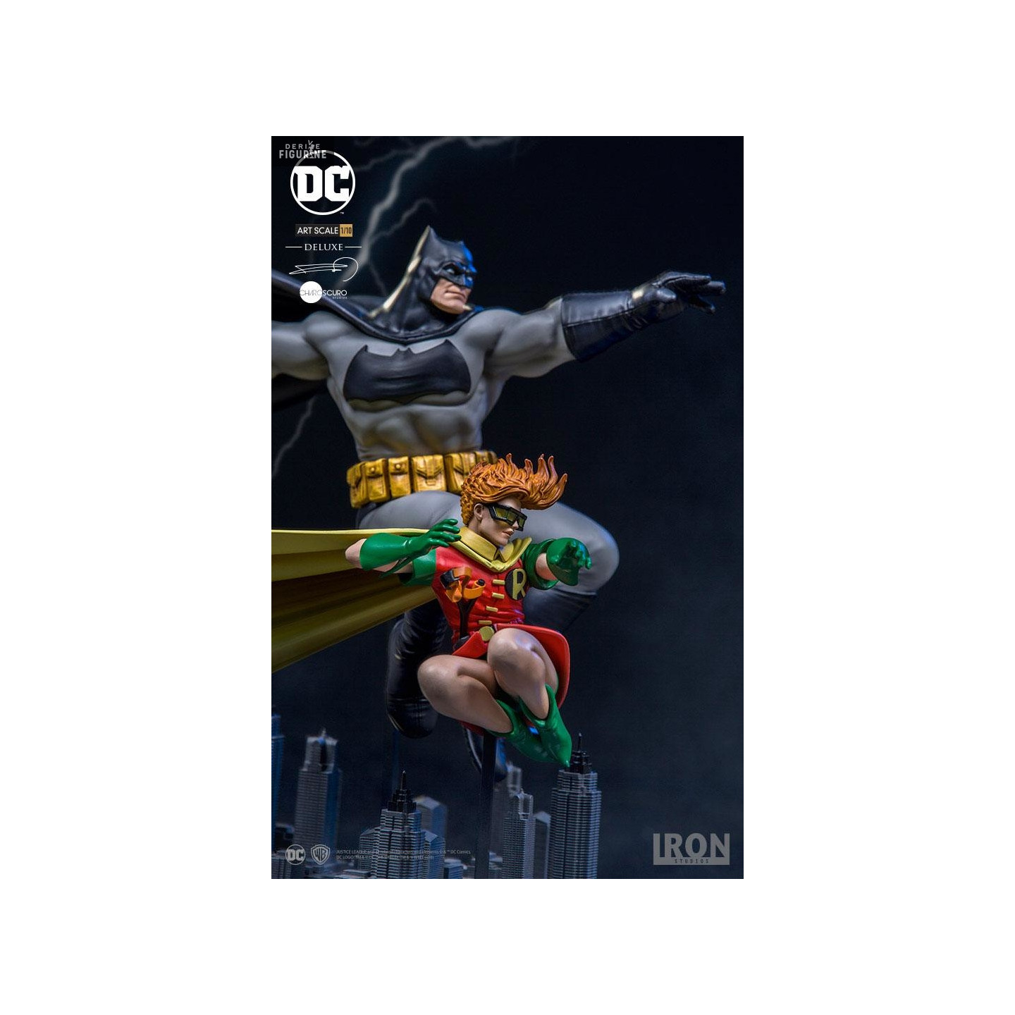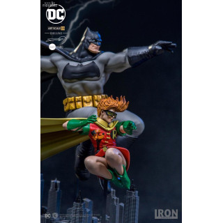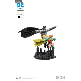 Official figure of Batman and Robin in resin about 23 centimeters high, scale 1/10. The manufacturer is Iron Studios.