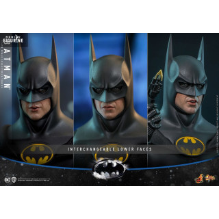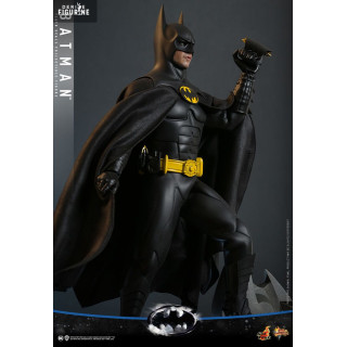 This official Batman figure is an impressive replica measuring approximately 30 centimeters in height and made to a 1/6 scale. It is part of the Movie Masterpiece collection, produced by the renowned manufacturer Hot Toys. The figure faithfully captures the iconic appearance of the Dark Knight, inspired by his look in Tim Burton's films, particularly Batman (1989), with Michael Keaton as the lead. The model features intricate details, including the textured black suit, fabric cape, and yellow utility belt, as well as additional accessories like Batman's gadgets.