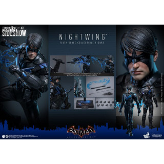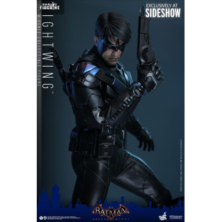 Official figure of Nightwing which measures approximately 30 centimeters high, scale 1/6. It is from the Videogame Masterpiece collection. The manufacturer is Hot Toys.