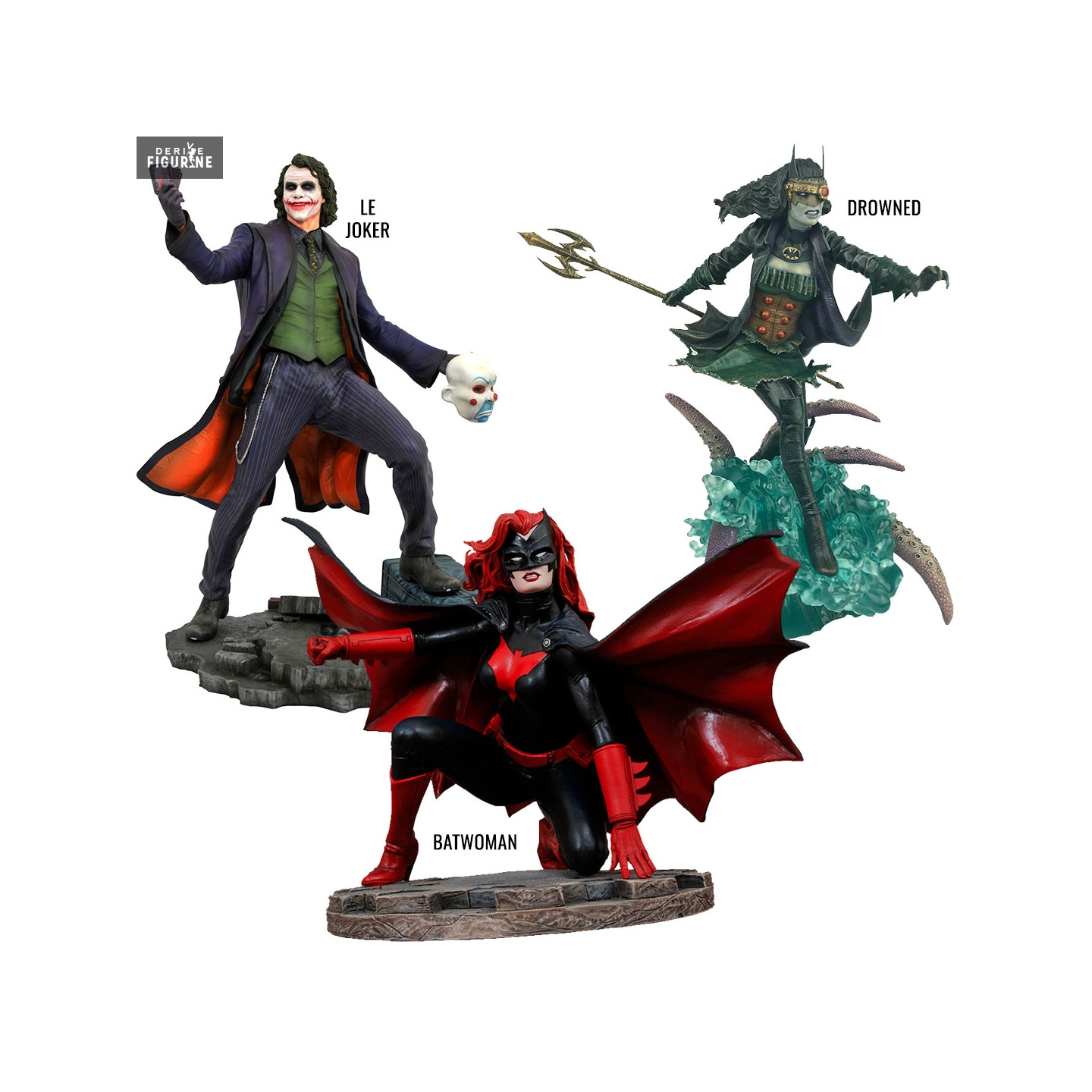 Official PVC figure of your choice between Joker (23 cm), Batwoman (20 cm) or Drowned (25 cm) in PVC. It is from the DC Gallery collection. The manufacturer is Diamond Select Toys.