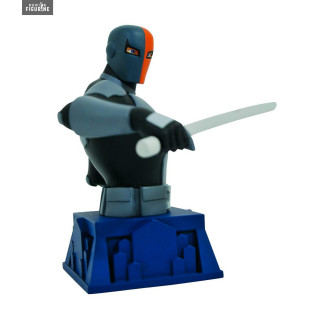 Official bust of Deathstroke in resin which measures about 15 centimeters high. The manufacturer is Diamond Select Toys.