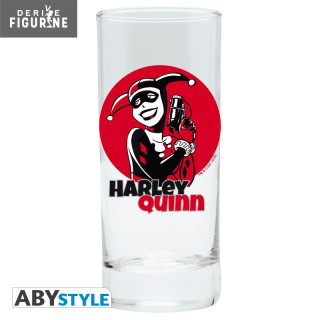 This glass represents Harley Quinn on a red background. She is surely one of the prettiest girls in Gotham, but is also certainly the craziest. This version is from the animated series.
