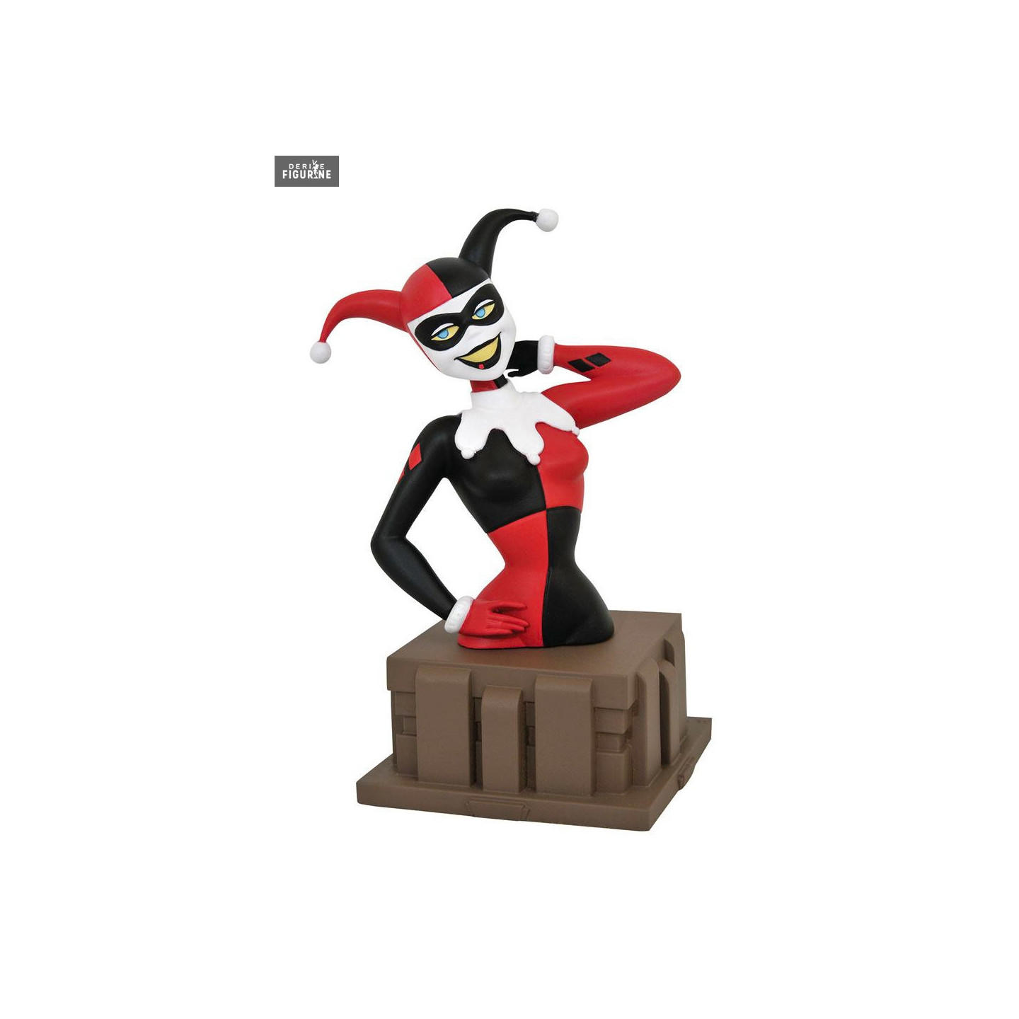 Official bust of Harley Quinn Harlequinade in resin which measures about 15 centimeters high. The manufacturer is Diamond Select Toys.