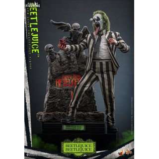 Beetlejuice returns in a realistic and terrifying form with this official 30-centimeter tall figure, scaled at 1/6, from the prestigious Movie Masterpiece collection by Hot Toys. Inspired by Tim Burton’s 1988 cult film, this figure perfectly captures the mischievous and chaotic charisma of Beetlejuice, the wild and eccentric bio-exorcist.
