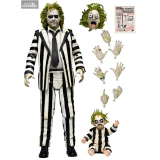 Official figure of Beetlejuice, Striped Suit which measures approximately 18 centimeters high. It is from the Ultimate collection. The manufacturer is NECA.