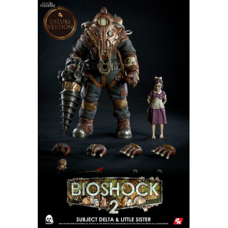 Official figures Subject Delta and Little Sister measuring about 15 and 33 centimeters high to scale 1/6. The manufacturer is ThreeZero. Working with three battery AG13 not included.