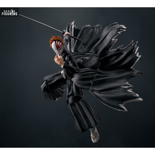 Official figure of Ichigo Kurosaki, Getsuga Tensho which measures approximately 16 centimeters high. It is from the S.H Figuarts collection. The manufacturer is Bandai.