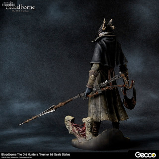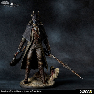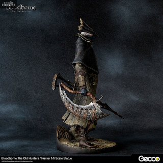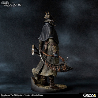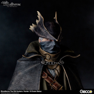 This statuette represents the hero you play in the very demanding video game called Bloodborne. A work created by Dark Souls developers, Bloodborne also received a small suite via a DLC called Bloodborne The Old Hunters. This figure represents the hunter from the DLC.
