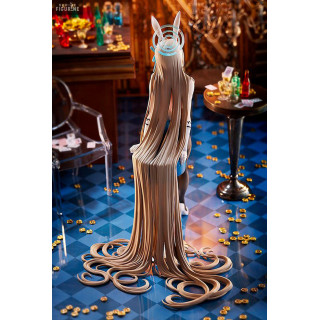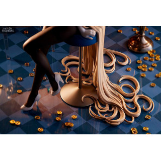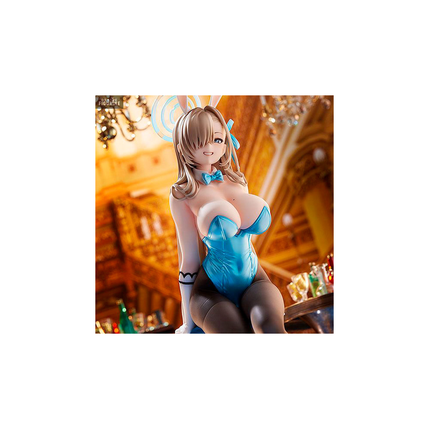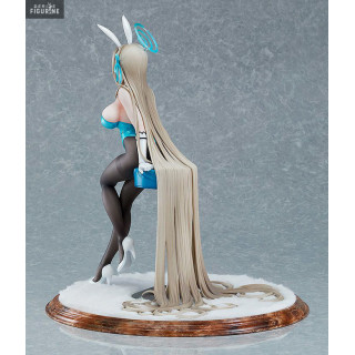 The sculpting is exceptionally detailed: the net tights are beautifully replicated, her flowing golden hair curls gently around her, and the costume’s fine elements — the bow tie, cuffs, and bunny ears — are meticulously crafted. The contrast between her gentle pose and the bold outfit creates a subtle yet captivating balance.