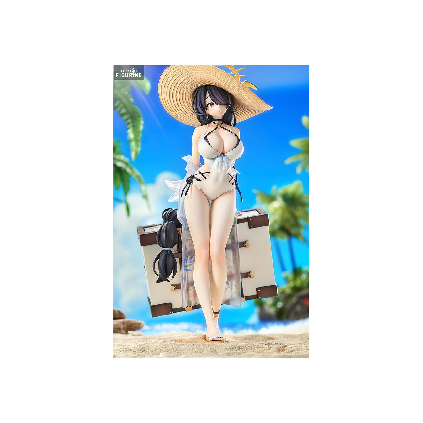 In this special Swimsuit edition, Hinata Wakaba is dressed in a stunning summer outfit that showcases her unique charm. The figure beautifully captures the spirit of a summer event in Blue Archive, where characters trade their uniforms for beach-ready attire. With her halo-adorned hat and intricately braided hair, Hinata exudes a divine elegance. The retro suitcase and sandy base add a narrative touch, evoking a serene beachside journey.