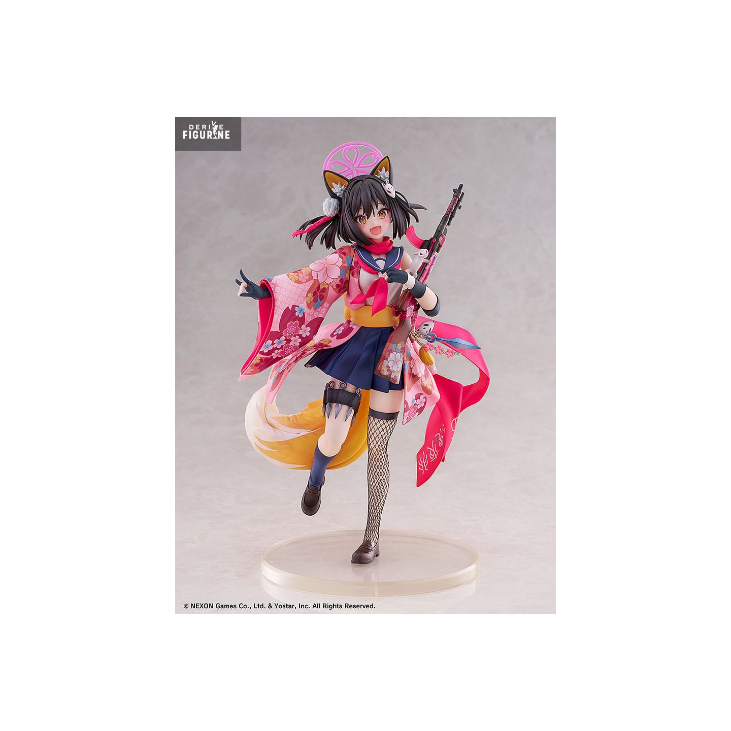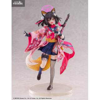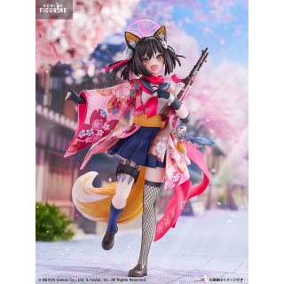 This 1/7 scale figure by Wing is a true masterpiece: standing about 23 cm tall, it perfectly captures Izuna’s lively spirit and freshness. Her outfit—a modern twist on traditional wear with a floral kimono, schoolgirl skirt, and fishnet stockings—is sculpted with stunning precision, while her fox tail and ears add an extra dose of charm. The vibrant paintwork and intricate details (from tiny accessories to her faithfully recreated weapon) make this a standout piece. Whether you're a fan of the game or a collector of exceptional figures, Izuna will bring joy and energy to your display!