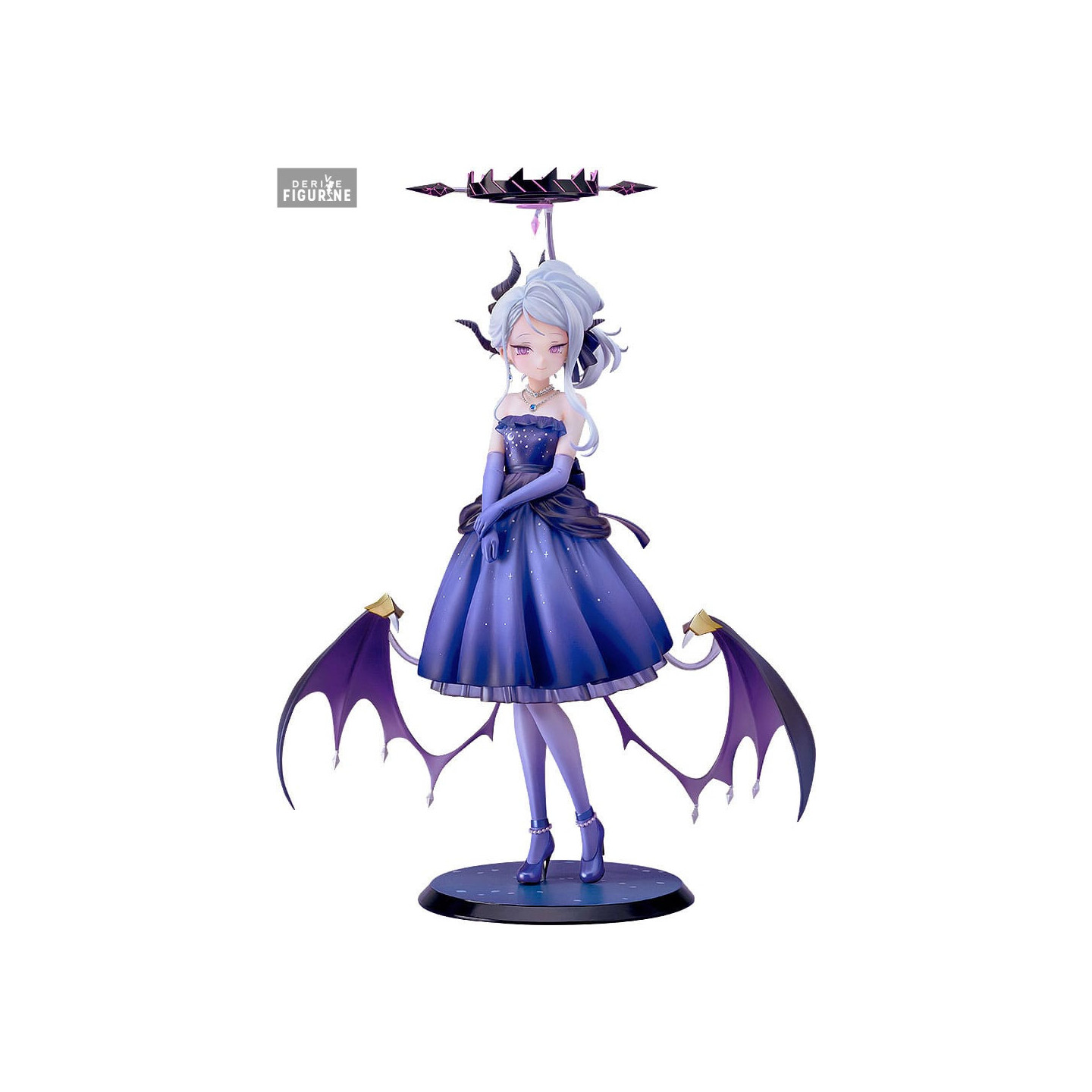 Standing approximately 25 cm tall and scaled at 1/7, this PVC figure boasts exceptional finish: detailed textures on the dress, a finely sculpted necklace, semi-transparent wings, and a striking contrast between elegance and demonic traits. A must-have for Blue Archive fans or collectors of refined fantasy figures.