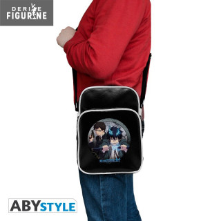 Polyurethane Blue Exorcist messenger bag that measures approximately 27x20 centimeters. It has a zipped outer pocket, a zipper for the main pocket and an adjustable strap. The manufacturer is ABYstyle.