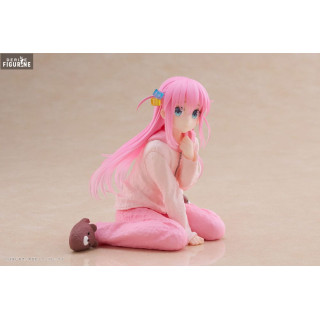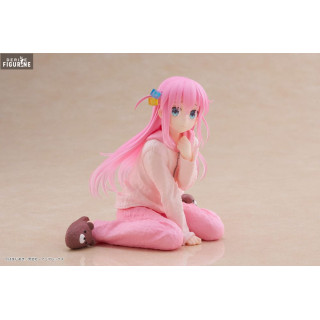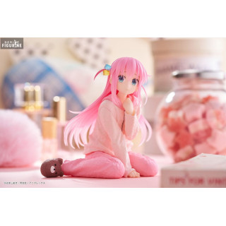 The figurine depicts Hitori Gotoh in a seated pose, dressed in her comfortable pink pajamas, ideal for relaxing moments at home. Her dressing gown is meticulously sculpted, showcasing the fabric details and plush texture of her pants and hoodie. The bear-shaped slippers add a playful and charming touch to the ensemble, accentuating the character's cute appearance.