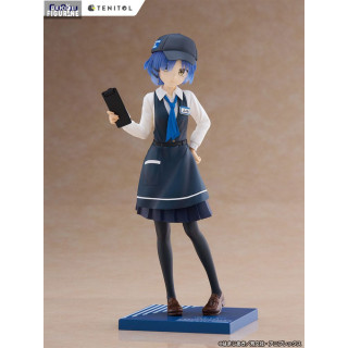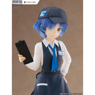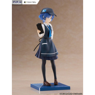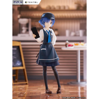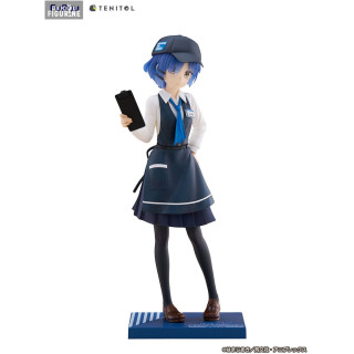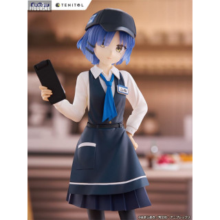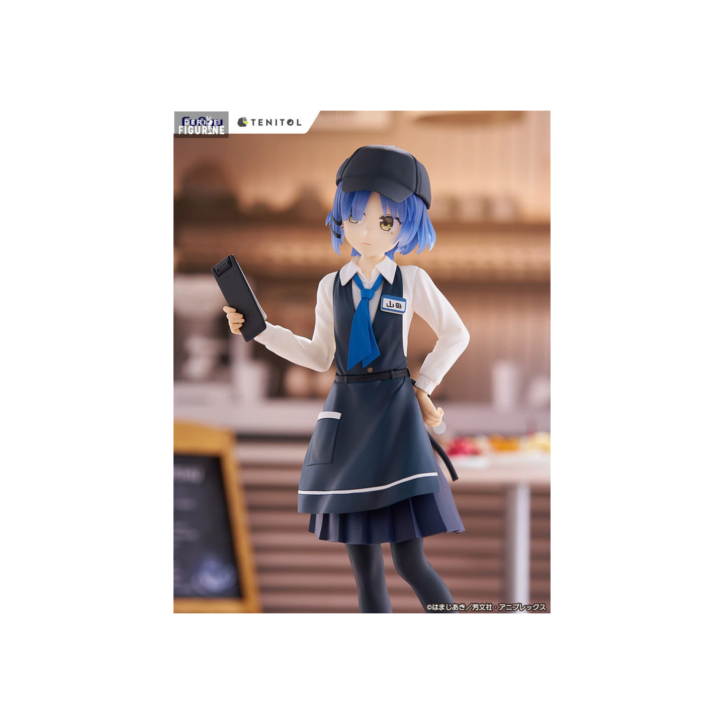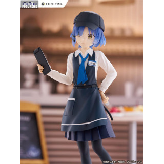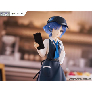 This 22 cm tall figure showcases Ryo Yamada in a sleek and modern work outfit, a far cry from her usual musician's attire. The Café Style version portrays Ryo in an unexpected role: that of a waitress. Her uniform is meticulously detailed, featuring a white shirt, a blue tie, and a matching apron, complemented by a cap and an earpiece, giving her a professional appearance. The notepad in her hand suggests she’s ready to take orders, adding a touch of realism to the scene.