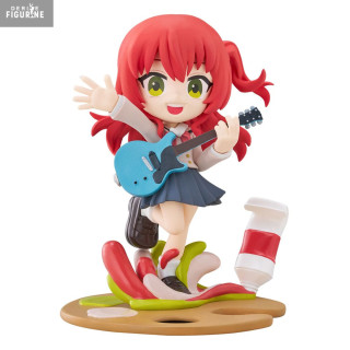 This figure perfectly captures Ikuyo’s lively nature through her dynamic pose. Her blue guitar is faithful to her instrument in the anime, highlighting her role as the band’s rhythm guitarist. The figure also reproduces her schoolgirl outfit with precise details, such as her pleated skirt and signature black shoes. Ikuyo's joyful expression, with her hand raised in greeting, perfectly reflects her sociable and warm personality. The splattered paint on the base adds a creative and laid-back touch, reminiscent of the series’ atmosphere.