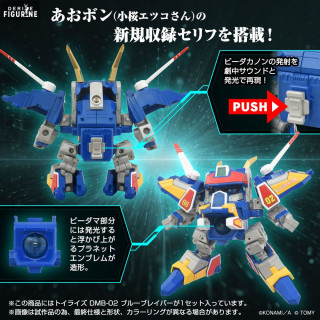 Official figure of DMB-02 Blue Braver in PVC which measures approximately 11 centimeters high. It is from the Toyrise collection. The manufacturer is Takara Tomy.