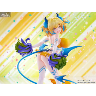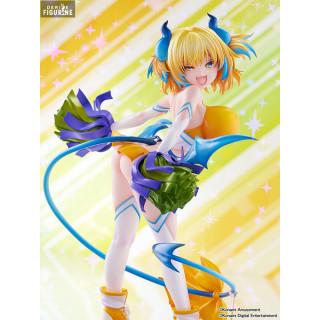 Wearing a vibrant and daring cheerleader outfit, Pine holds up her green and purple pom-poms with a mischievous smile. Her bright yellow top, matching legwear, and playful demon tail and horn accessories highlight her cheeky origins, while her dynamic pose—slightly arched, ready to spring into action—captures all her energetic vibe. Fine details like fabric textures, subtle paint shading, and crisp accessory work make this piece stand out.