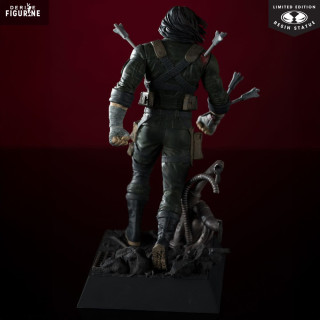 This Limited Edition resin design captures a moment of his struggle: clad in worn olive fatigues, a tactical vest laden with pouches, and bloodstained bandages, he stands atop a base studded with metallic tentacles. Four arrows lodged in his torso and arm testify to his unbreakable resilience. His stubbled beard, tangled hair, and steely gaze perfectly reflect his indomitable spirit.