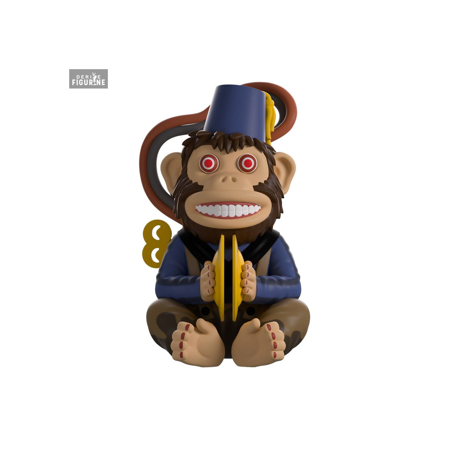 The sculpt features the seated monkey wearing its blue fez and clutching bright yellow cymbals, ready to unleash its apocalyptic tune. A golden wind-up key and the signature cables at the back complete the design, while the vivid red eyes and wide resin grin embody the toy’s eerie yet playful persona.