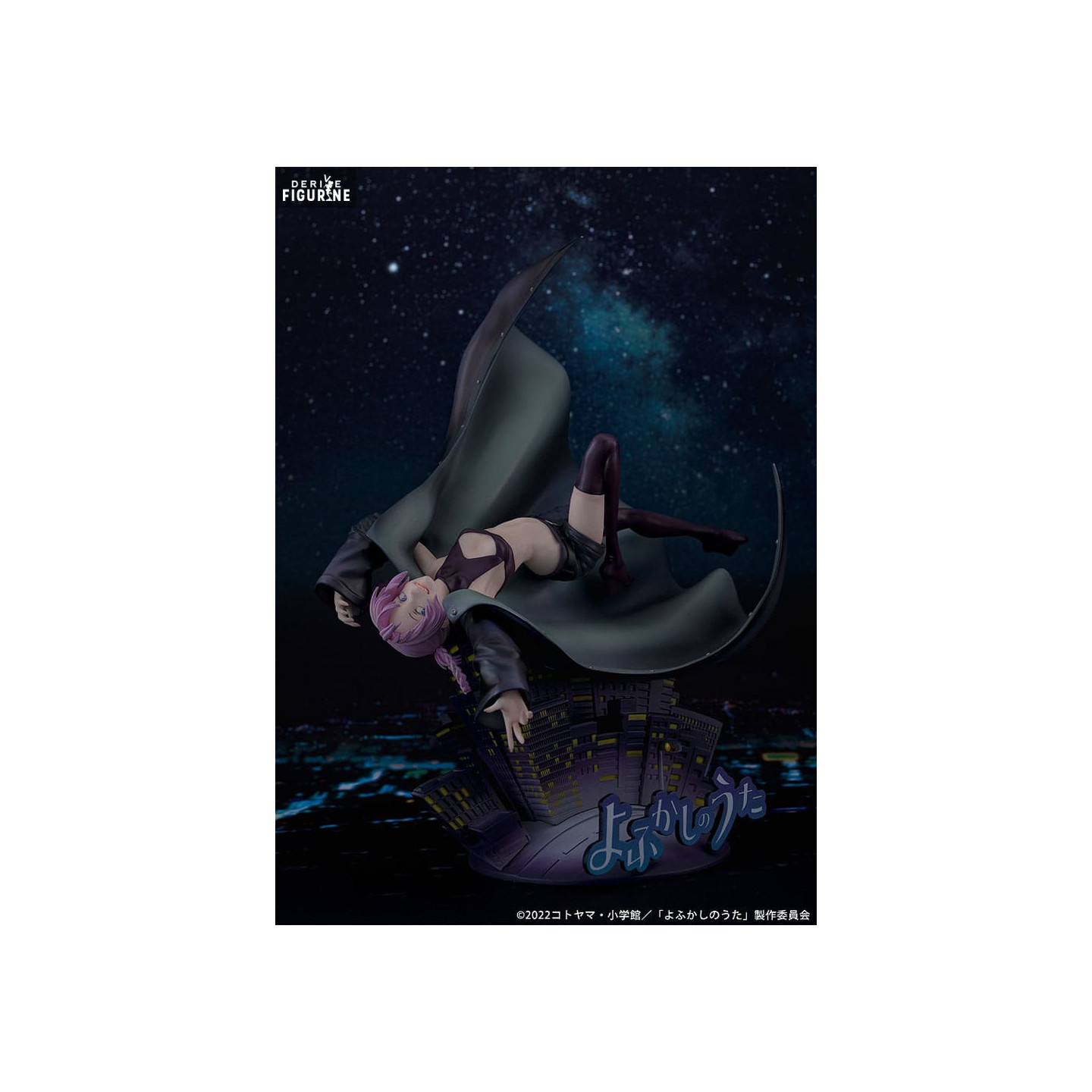 This figure, crafted by Proof, perfectly captures Nazuna's spirit. Standing approximately 31 centimeters tall at a 1/7 scale and made of PVC, it depicts Nazuna in an acrobatic pose, floating in the air, with her long dark cape forming a shadowy aura around her. Nazuna’s mischievous expression, lilac hair, and revealing attire reflect her eccentric personality. The base of the figure, representing a nighttime cityscape silhouette, adds an artistic touch, enhancing the series' atmospheric vibe. This piece is perfect for collectors and fans of "Call of the Night," offering a striking portrayal of Nazuna in all her vampiric glory.