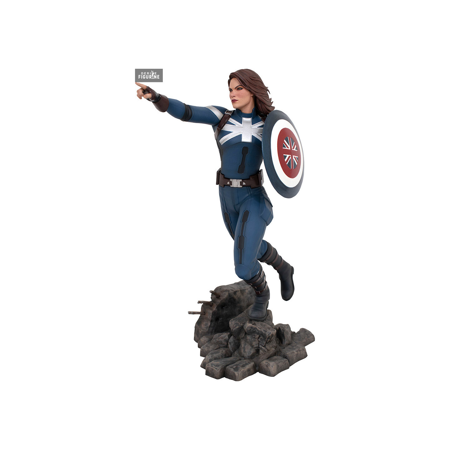 In the Marvel movies we know, Peggy Carter is Steve Rogers' big love. Unfortunately, if he has been able to pass the years without incident, this is not the case for Peggy. On the other hand, you were able to discover her differently in What If...?, the Disney + series. We discover a young woman ready to become the future Captain America by receiving the injection of the Super-Soldier serum. You can admire her with her shield and decorative base.