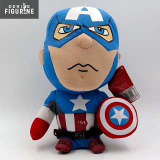 Captain America is now available as a talking plush version. With all his equipment, outfit, mask, belt and shield, he can chat with 4 different sentences.