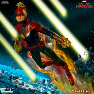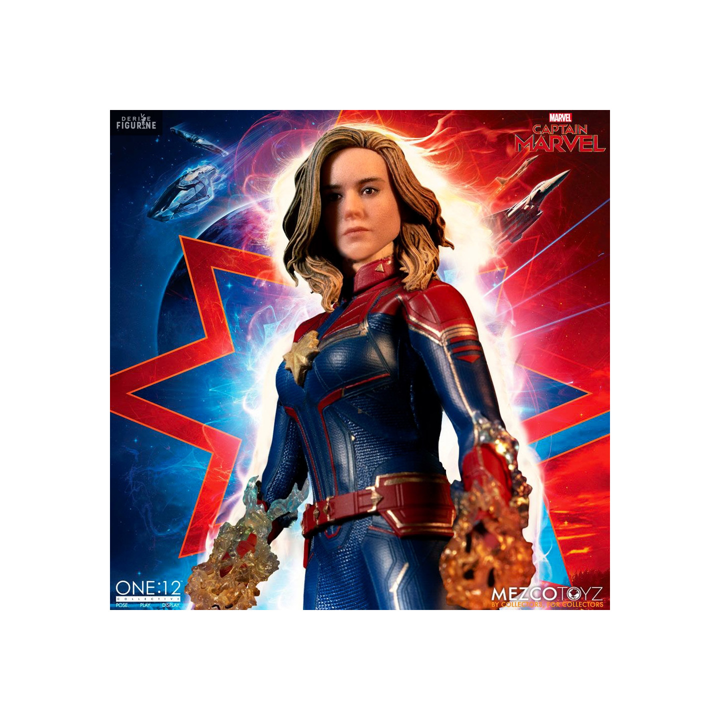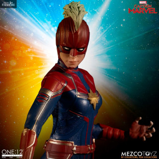 Official figure of Captain Marvel which measures about 16 centimeters high, scale 1/12. The manufacturer is Mezco Toys.