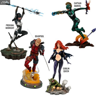 Official figure of your choice between Captain Marvel (23 cm), Deadpool (23 cm), Goblin Queen (23 cm) or Proxima Midnight (27 cm) in PVC. It is from the Gallery collection. The manufacturer is Diamond Select Toys.