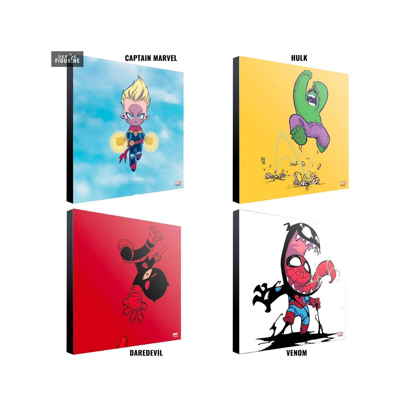 Official board to choose between Captain Marvel, Hulk, Daredevil or Venom which measures approximately 30x30 centimeters. High quality wood panel printing. The manufacturer is Semic Distribution.