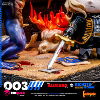 Official figure of Alucard vs Richter Belmont which measures approximately 15 centimeters high. It is from the DioCube collection. The manufacturer is Figurama Collectors.