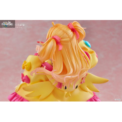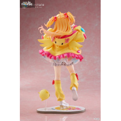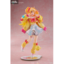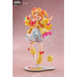 Details abound: a bandage on her knee, trinkets dangling from her jacket, a floating mascot held up by a clear rod, and a base decorated with her logo. The sculpt adds volume to every part of her outfit, while the soft pastel palette creates a cohesive and charming finish.