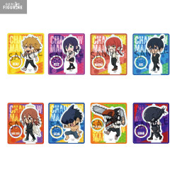 Each character is portrayed in a super-deformed (SD) style, with cute, stylized proportions that still retain their iconic features. The set includes Denji, Reze, Power, Aki, Beam, Bomb Girl, and more, each standing on a colorful square base with their name prominently displayed.
