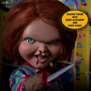 The most feared killer doll is back in with a new figure of her. This Chucky is sold with a hand with a knife at the end, but also a normal hand that can hold a small dagger. Finally, know that this is a talking doll that can say no less than seven sentences (in English) and that works with 3 LR44 batteries (included).
