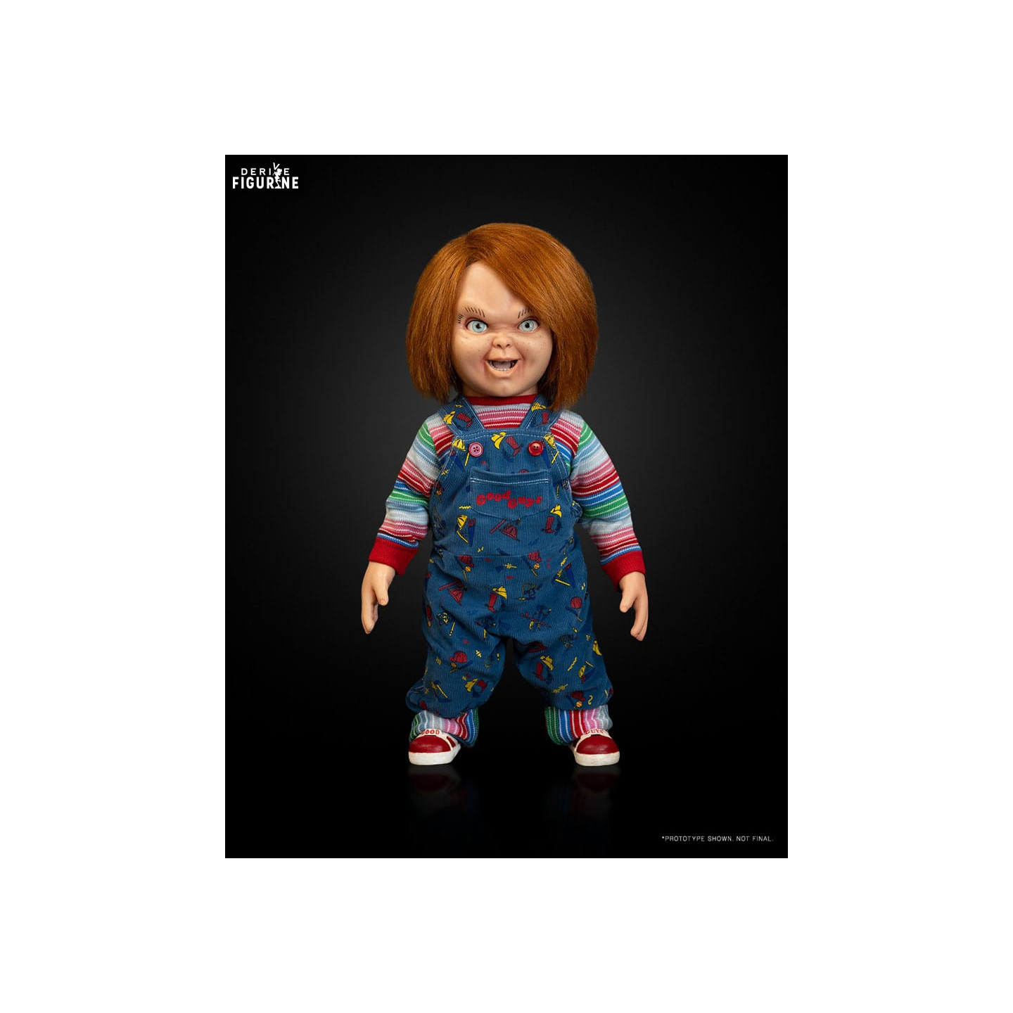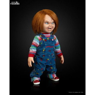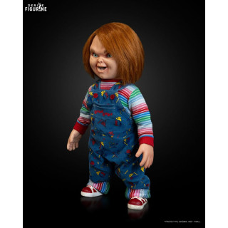 Official figure of Chucky, Doll around 66 centimeters high to scale 1/1. The manufacturer is NECA.