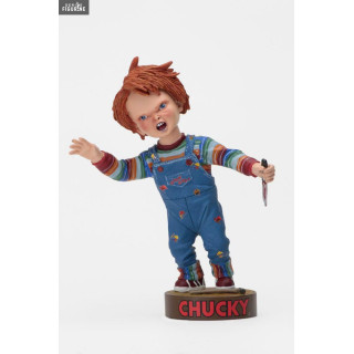 Official Chucky figure in resin about 18 centimeters high. Bobble head version. It is from the Knocker Head collection. The manufacturer is NECA.
