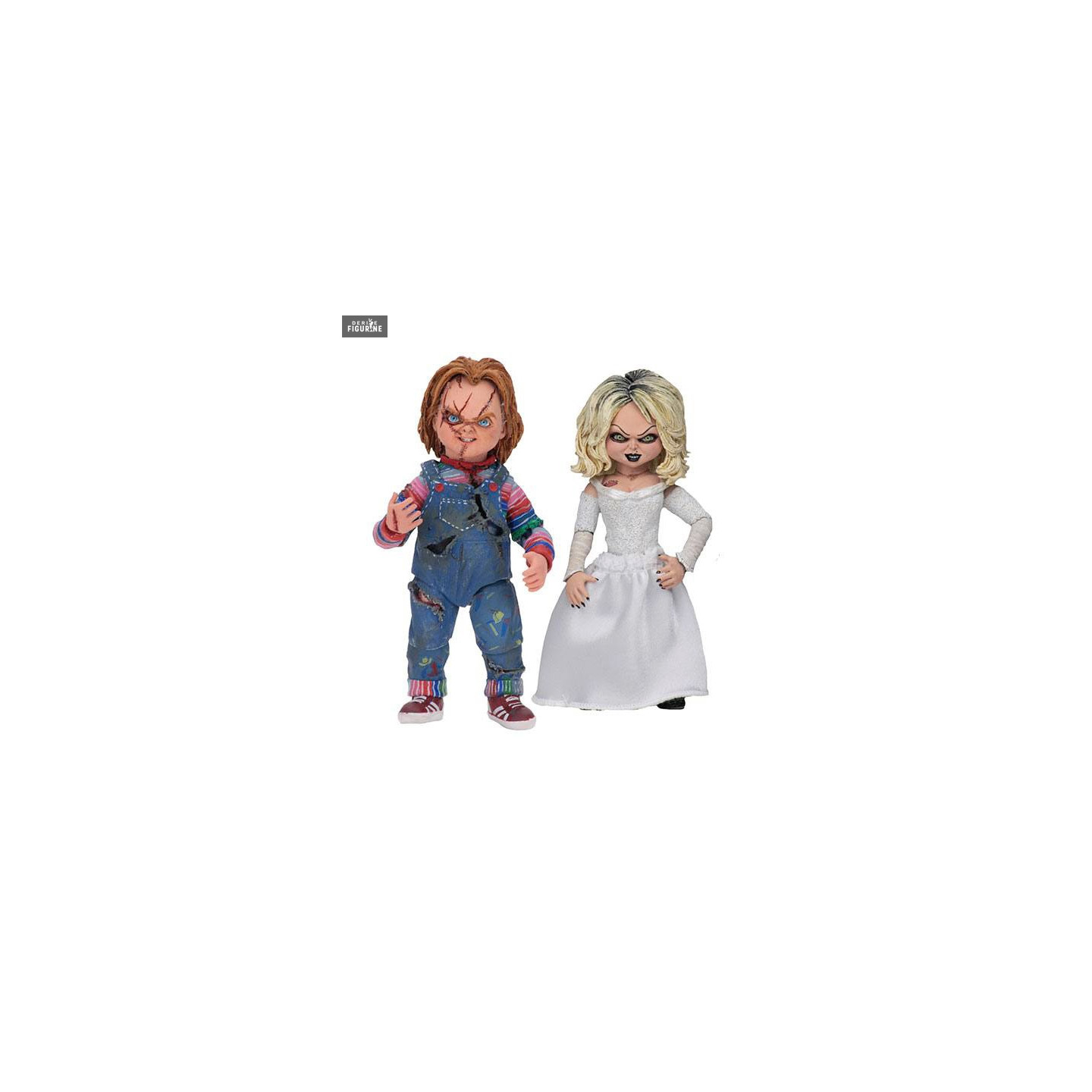 Official Chucky and Tiffany figures which measure about 10 centimeters high. The manufacturer is NECA.