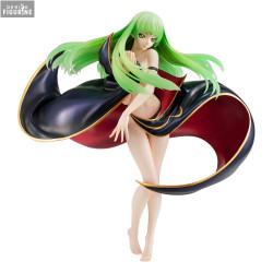 This C.C. 15th Anniversary figure celebrates the 15th anniversary of Code Geass with a captivating sculpture that highlights her grace and elegance. Draped in a flowing black and red cloak, the figure perfectly captures C.C.'s mysterious and enchanting aura, with her signature green hair floating gently around her.