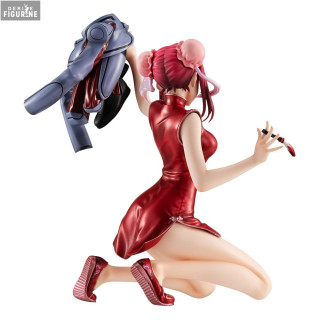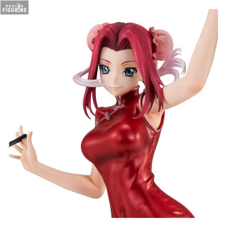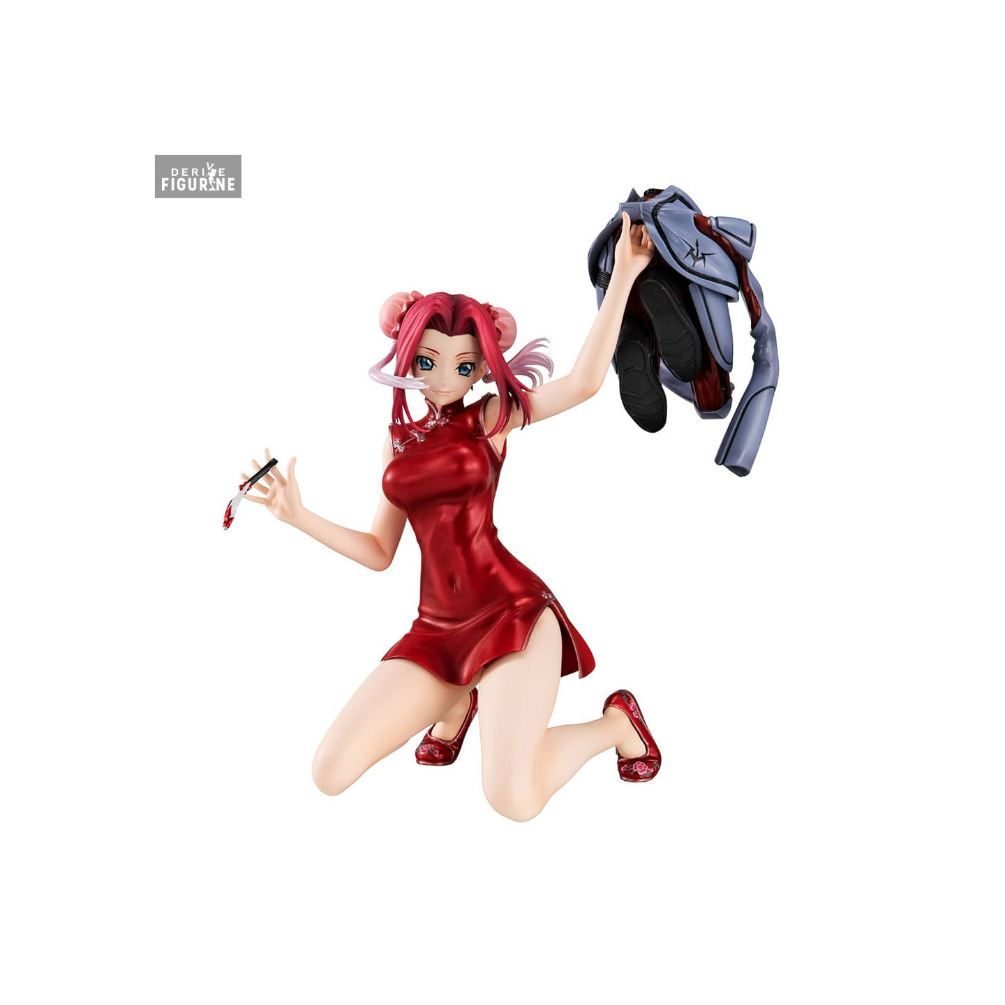 This figure from the G.E.M. Series by Megahouse stands approximately 15 cm tall. It features Kallen in a dynamic pose, dressed in an elegant red cheongsam, iconic of her infiltration during a ball in the anime. The intricate details of the dress, with its shimmering patterns and realistic folds, add a refined touch. In one hand, she holds her neatly folded uniform, while the other hand holds a pair of chopsticks, a subtle nod to her espionage mission.