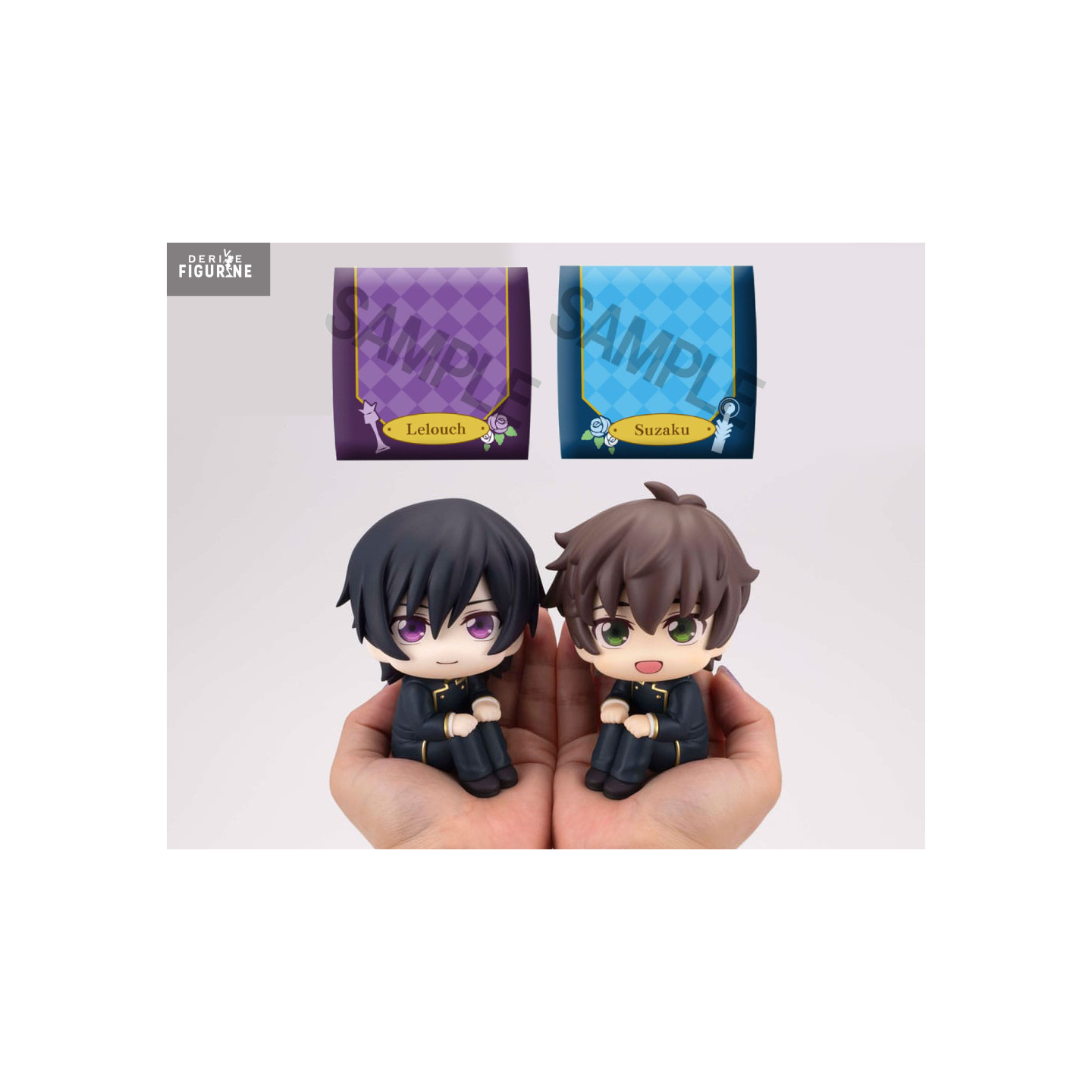 Official figures of Lelouch Lamperouge & Suzaku Kururugi, (with gift) in PVC which measure approximately 11 centimeters high. They are from the Look Up collection. The manufacturer is Megahouse.