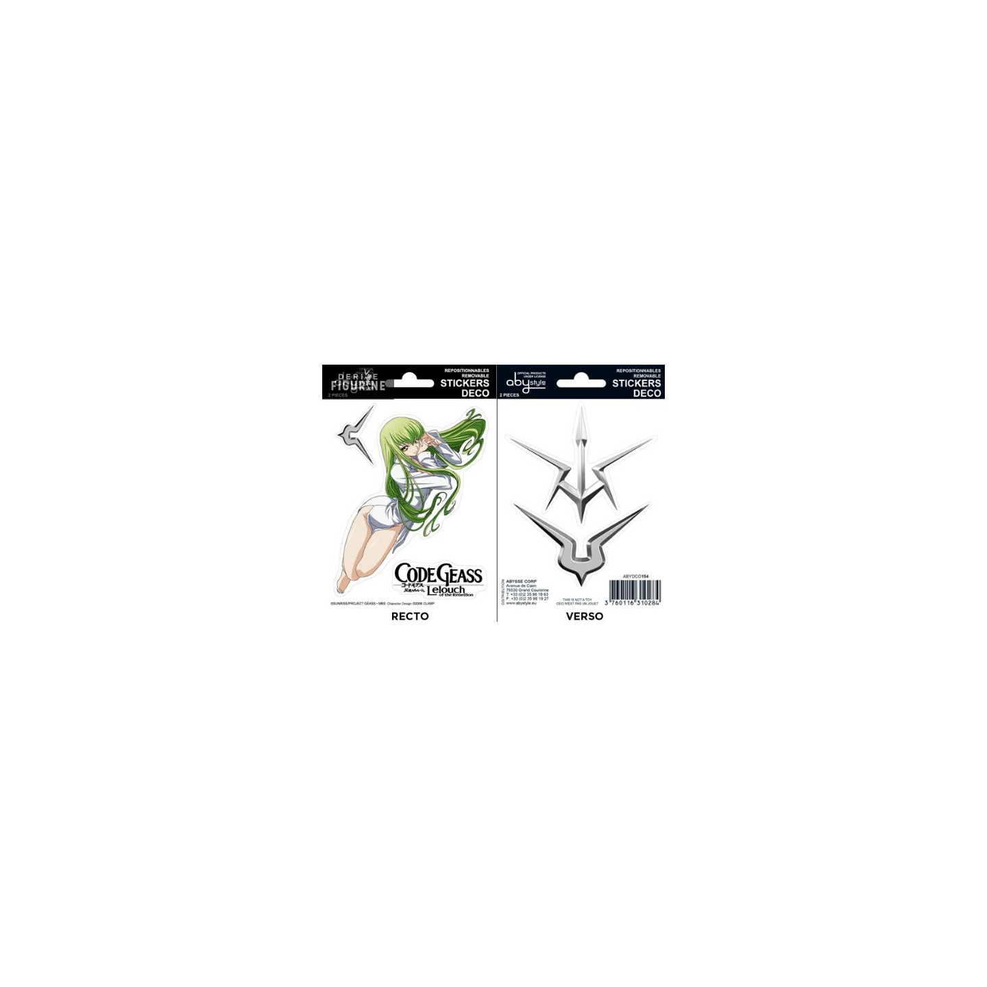 Here is a pack containing a large sticker of the pretty C.C., but also emblems of black knights. This is what personalize your notebooks, furniture and even your walls and much more.